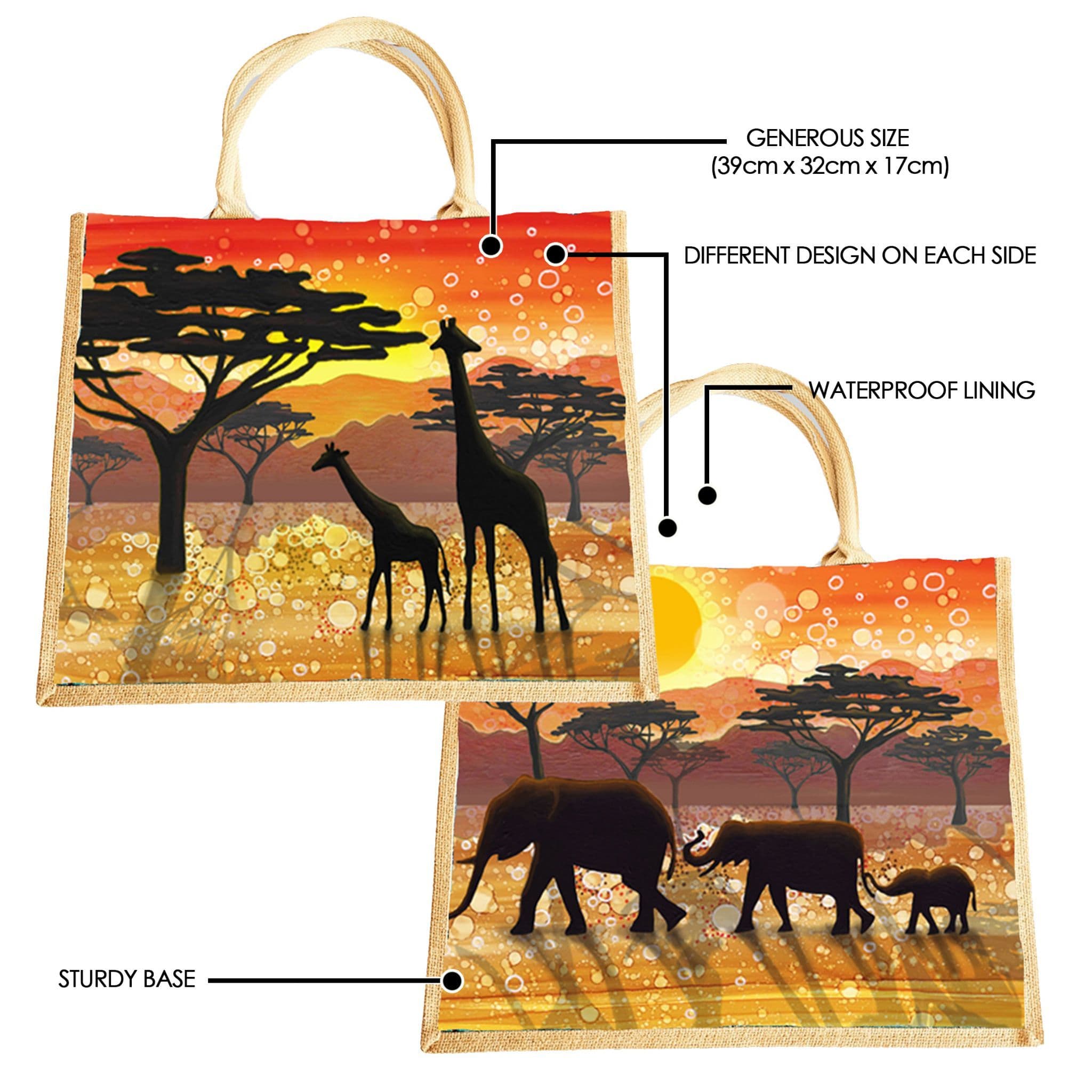 Large Jute Hessian African Animal Shopping Bag